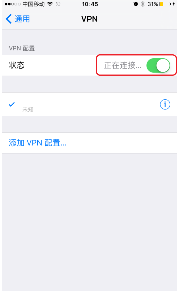 第七步: 存儲后會在多出一個剛添加的賬戶,先選中,再滑動小按鈕,顯示正在連接